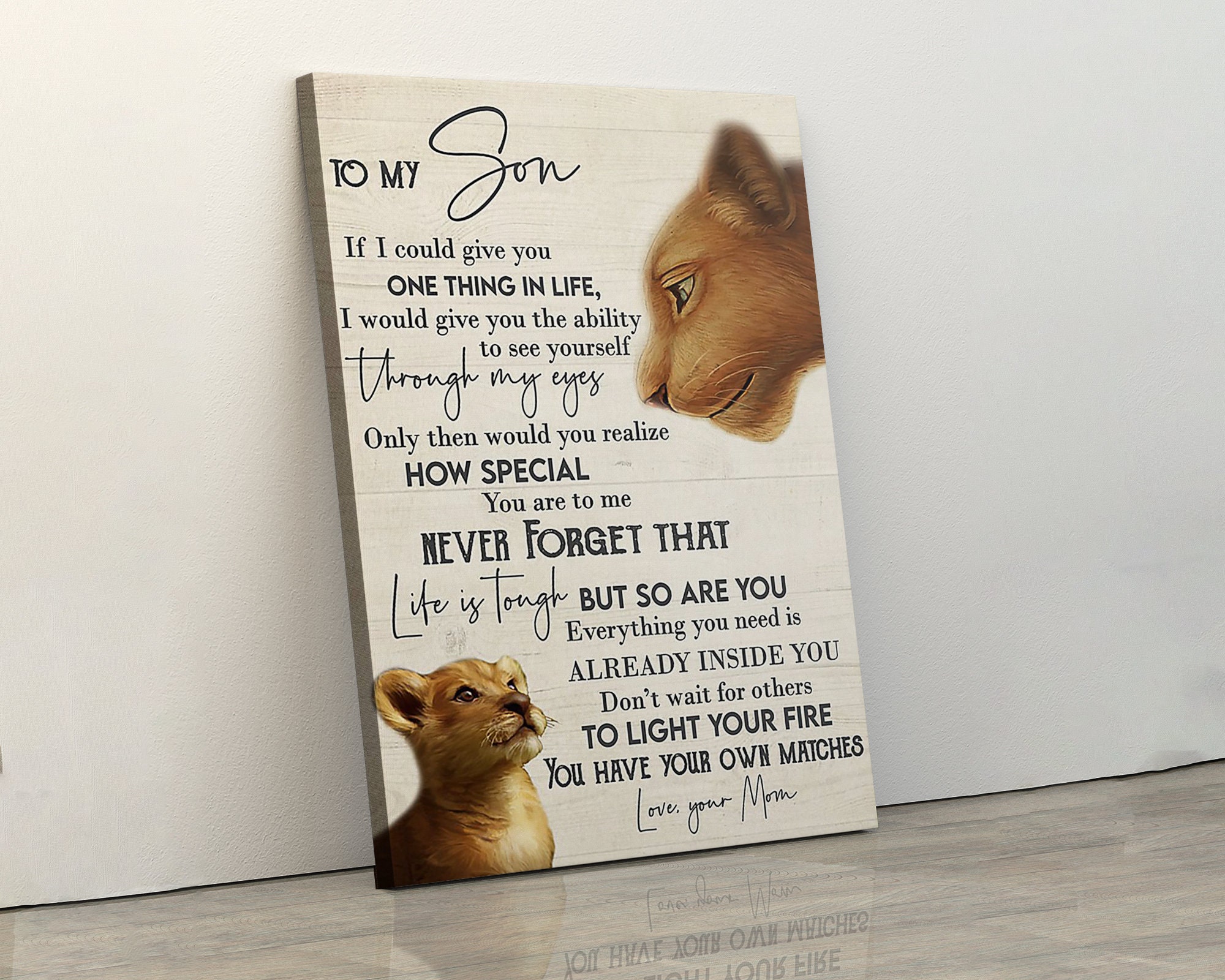 Lion canvas poster to my son how special you are to me never forget that life in tough your fire you have your own matches love your Mom