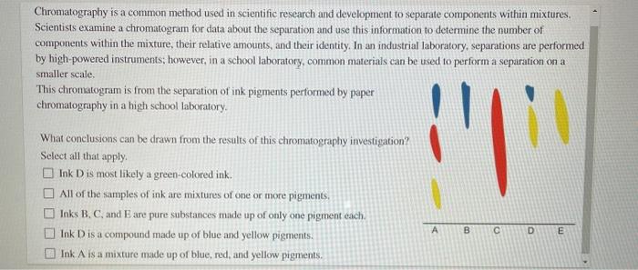 Color Chromatography Experiments | HST Chemistry Projects Chromatography is one of the simplest techniques for separating the individual components of a mixture. In chemistry, a mixture is a combination of substances that can be separated because they are not chemically bonded. As opposed to a compound, which has elements chemically bonded together.