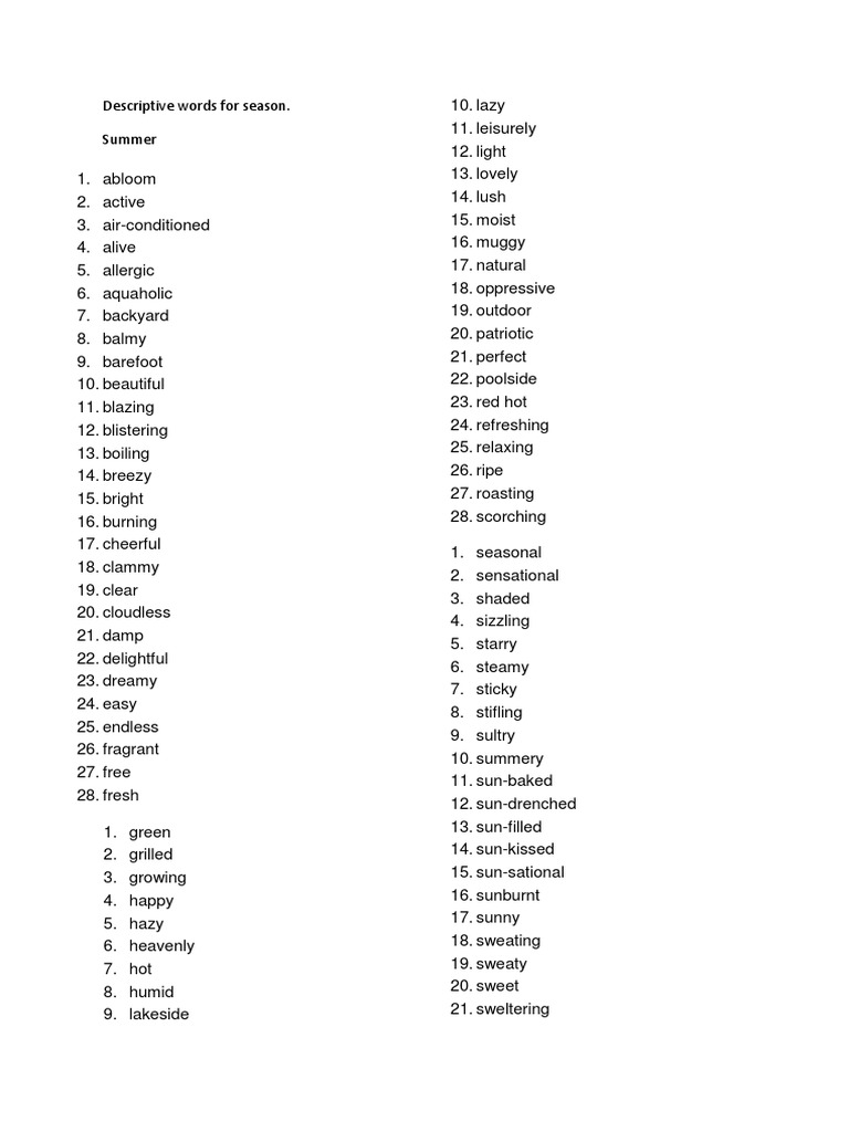 PDF Descriptive words online.cdr 26: Word list. Descriptive Words. We may change these terms of use from time to time. Check before reusing any content from this website. Descriptive Words.