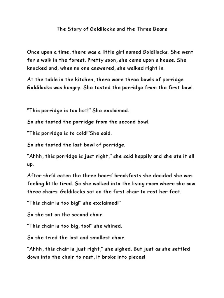 Goldilocks and the three bears story text