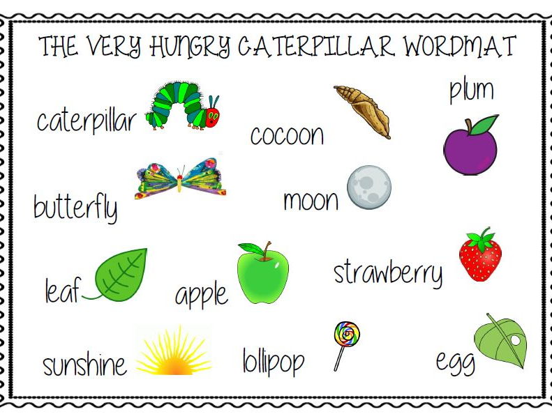 49-BL1-K - The Very Hungry Caterpillar - Words - 100Books... | Quizlet Learn words from the story "The Very Hungry Caterpillar" Learn with flashcards, games and more — for free. Very Hungry Caterpillar Words by Carle Eric Book The Cheap... | eBay Very Hungry Caterpillar: Words. Each month we recycle over 2.3 million books, saving over 12,500 tonnes of books a year from going straight into landfill sites. All of our paper waste is recycled and turned into corrugated cardboard. Early Learning Resources The Very Hungry Caterpillar Word... A collection of flashcards featuring words and images from The Very Hungry Caterpillar, ideal for acting as prompts in group discussions when talking about this wonderful story. 'The Very Hungry Caterpillar' is a fantastic book written by Eric Carle. 15 Super Fun and Easy Very Hungry Caterpillar Activities Celebrate Very Hungry Caterpillar Day With These 15 Easy Activities. This special day takes place No activity roundup for The Very Hungry Caterpillar would be complete without the classic egg These simple, colorful word puzzles are a novel way to practice letter sounds, shape recognition...