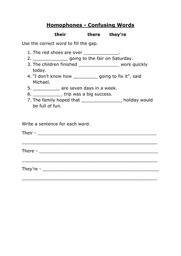 There, their and They're Worksheet - Twinkl Use our There, Their, and They're worksheet to help your students to practice these common homophones in their correct grammatical sense.This There, Their, and They're worksheet has sentences with gaps in for students to write in the correct homophone.These Year 1 to Year 6 Grammar Worksheets in PDF can also be used as great SATs practise for UKS2 students.We … There Their and They're Worksheet - Homophones KS1 01.03.2016 · Use this fantastic There, Their and They're worksheet to help your KS1 students learn the difference between these tricky homophones. Ideal for English teachers, this worksheet can be used to support your lesson plan on homophones or just to improve your class's overall grammar and literacy skills.This printable resource features a missing word exercise. Your …