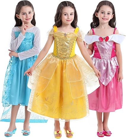 Princess Costume Girls Dress Up Trunk, MAGFRO Princess Dresses for Girls 4-7, 3 Sets of Toddler Dress Up Clothes Pretend Play Costumes Perfect Girls ...