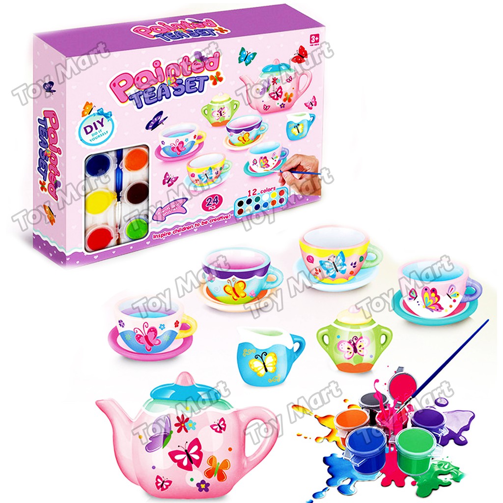 Amazon.com: 4M Paint Your Own Mini Tea Set : Toys & Games The 4M Paint Your Own Mini Tea Set combines the joy of arts and crafts with the fun of tea time. This classic tea set helps children practice their social and artistic skills. The 13-piece ceramic tea set includes a teapot, four (4) cups and saucers, a sugar bowl and creamer.