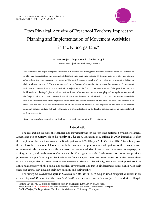 Individual lesson plans - Active For Life Active for Life is pleased to offer the following ready-made lesson plans for educators, caregivers, camp leaders, and after-school program leaders who want to deliver physical literacy instruction to children. All lesson plans are in PDF format. To see how these fundamental movement skills look, check out these videos at KIDDO. 3 - 5 Years … Continued PDF Physical Activity and Play for Toddlers Physical activity can be spread over the day, in short bursts and interspersed with periods of rest, as toddlers tire quickly, especially with prolonged physical activity. The DH classifies physical activity into three types: sedentary, light intensity and more energetic. Light intensity activity and more energetic physical activity Space and Astronauts Preschool Activities, Lessons, Games ... Space and astronaut preschool activities, games, and worksheets. Have you ever looked at the night sky and wondered, "What else is out there?" Space exploration is a natural extension of human curiousity. People want to know what is outside their world. The Universe is everything that exists. The Earth is part of the Universe. So are the Sun, the Moon, and all the planets. 18 Simple Movement Activities for Preschoolers - Empowered ... Regular physical movement is necessary for overall health and well-being throughout life. Instil this habit at an early age. 18 Movement Games and Activities for Preschoolers. Here are some ideas of fun kids activities to try at home or at school. You don't need any fancy equipment and you can improvise with many household or outdoor items.