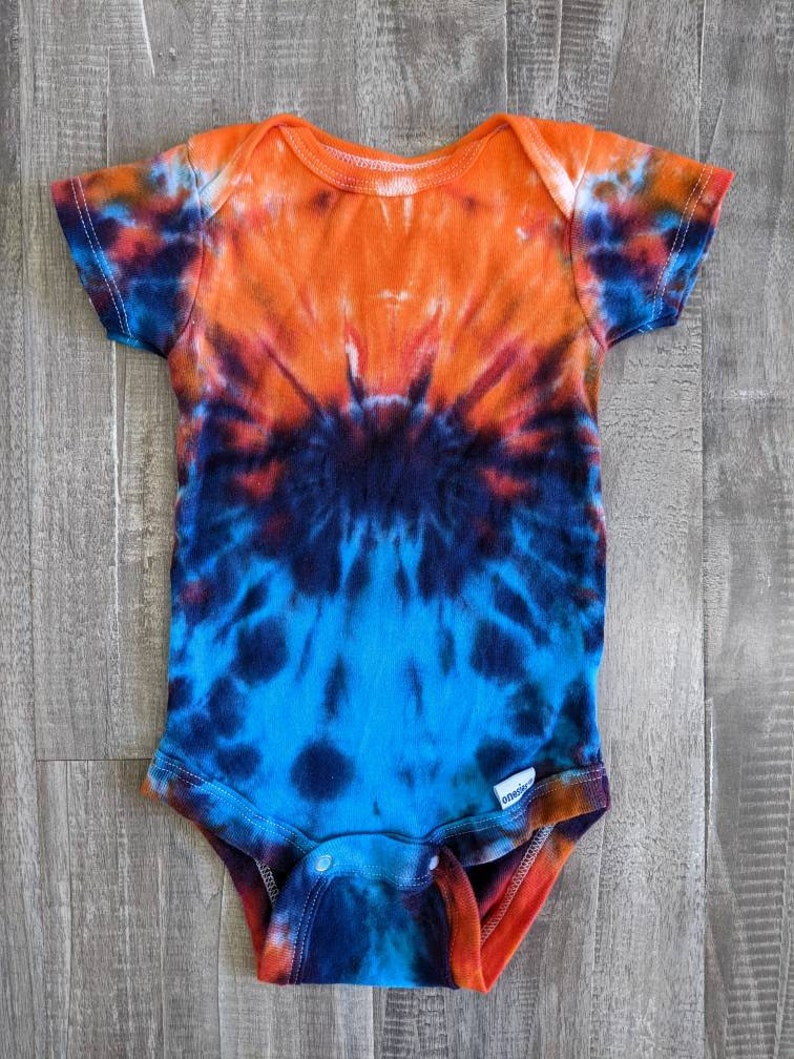 Tie Dye Baby Onesie| 0-3 Month Size Baby Clothes| Newborn Cotton Bodysuit| Fire and Ice Onesie| Blue Orange Tie Dye| Tie Dyed Baby Clothes