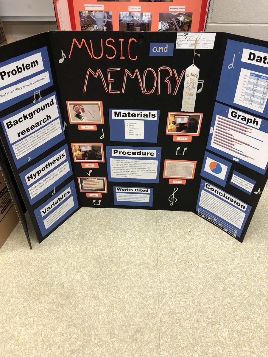 Music Science Fair Project: The Effect of Music on Memory ... The beauty of this music science fair project is that you probably already own everything you need, or at least know someone that does, and can borrow the materials fairly easily. The digital age is a wonderful thing. Therefore, we are boldly proclaiming thus: Download Project. Grade. Middle School.