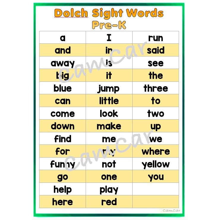 Sight words pre k