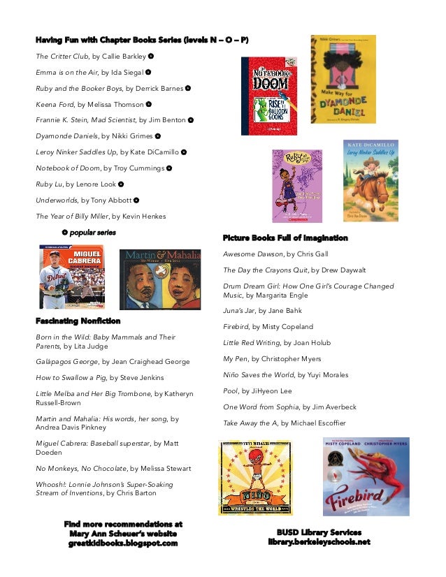 FREE 2nd Grade Worksheets | 123 Homeschool 4 Me LOTs of 2nd grade worksheets for having fun practicing 2nd grade math, language arts, science, social studies, art, music, and more with these free printable worksheets for 2nd grade! Whether you are a homeschooler, classroom teacher, or are a parent supplementing your child's education -- we've got... 270 Best Summer Reading Ideas | summer reading, summer... See more ideas about summer reading, summer reading program, reading incentives. 4th Grade Summer Reading Book List. Jump into a summer or reading with this summer reading guide for children complete with a printable book list. #summerreading #summerbooklist... Third Grade Summer Reading List | Education World Take aim at the "Summer Slide" and get your students excited about reading with these titles picked specifically for kids at the third grade reading level. The Best School Year Ever by Barbara Robinson The Herdmans are the most famous kids at Woodrow Wilson School.