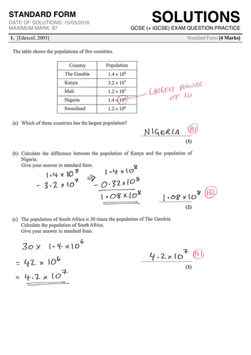 Second Grade Math Common Core State Standards: Overview Add and subtract within 20. 2.OA.B.2 Fluently add and subtract within 20 using mental strategies. By end of Grade 2, know from memory all sums of two one-digit numbers. See related worksheets, workbooks, games, exercises, lesson plans Work with equal groups of objects to gain foundations for multiplication. 2.OA.C.3 What is Standard Form? - Definition, Facts & Example (ii) 0.000 001 2. Write the first non zero digit. Here it is 1. Add a decimal point after it: 1. Notice that the decimal point shifts 6 places to the right. So, in standard form: 0.000 001 2 is 1.2 ×10ˉ⁶ . Real Life Examples. Example 1: The distance between the Sun and Mars is 141,700,000 miles or 228,000,000 km. Writing Numbers In Standard Form | Mathematics Grade 5 ... Writing Numbers In Standard Form | Mathematics Grade 5 | Periwinkle In this video we will learn how to write numbers in standard form.Here is a big nine digi...