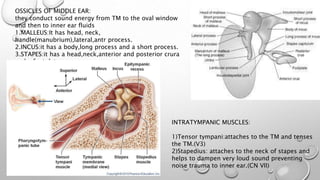 my.clevelandclinic.org › health › bodyNose: Anatomy, Function, Sinuses, Septum, Turbinates Your nose is part of your respiratory system. It allows air to enter your body, then filters debris and warms and moistens the air. Your nose gives you a sense of smell and helps shape your appearance. Many common symptoms affect your nose, such as a stuffy nose and nosebleed. Other symptoms may need treatment to keep your nose functioning well. en.wikipedia.org › wiki › PharynxPharynx - Wikipedia The anterior aspect of the nasopharynx communicates through the choanae with the nasal cavities. On its lateral wall is the pharyngeal opening of the auditory tube, somewhat triangular in shape and bounded behind by a firm prominence, the torus tubarius or cushion, caused by the medial end of the cartilage of the tube that elevates the mucous membrane. › hearing-health › anatomy-of-the-earAnatomy of the Ear | Inner Ear | Middle Ear | Outer Ear The Outer Ear. The outer ear includes: auricle (cartilage covered by skin placed on opposite sides of the head) auditory canal (also called the ear canal) eardrum outer layer (also called the tympanic membrane) The outer part of the ear collects sound. Sound travels through the auricle and the auditory canal, a short tube that ends at the eardrum.