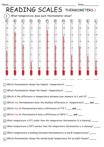 Reading a thermometer worksheet