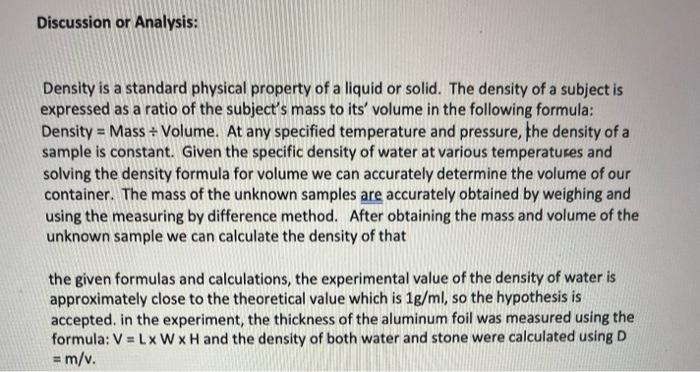 PDF SAMPLE density LAB WRITE UP FOR EXPERIMENT 8. Pour!the!corn!syrup!in!the!middle!of!the!cylinder,!avoiding!the! sides.! 9. Repeat!the!same!procedure!with!the!dishsoap.!Pourthesoap! directlyinto!the!middle!of ... Density hypothesis - Encyclopedia of Mathematics The density hypothesis enables one to obtain results in the theory of prime numbers that are comparable with those following from the Riemann hypothesis. For example, it follows from the density hypothesis that for sufficiently large $ x $ there is at least one prime number in each segment $ [ x, x+ x ^ {\epsilon + 1/2 } ] $. Liquid Density Experiment: How to stack a liquid layer rainbow an empty bottle (with a lid) a measuring cup. dark corn syrup. dish washing liquid. water (add food coloring) vegetable oil. rubbing alcohol (add food coloring) And you can add two more layers if you have some honey (most dense) and lamp oil (least dense). The video notes recommend not turning it over too much for fear of the colors getting ... 2: The Density of Liquids and Solids (Experiment) Part A: The Density of Water Using the electronic balance, obtain the mass of your 100-mL graduated cylinder. Make sure it is dry before you weigh it. Add 20-25 mL of distilled water to the graduated cylinder. Precisely measure this volume of water. Then measure the combined mass using the electronic balance.