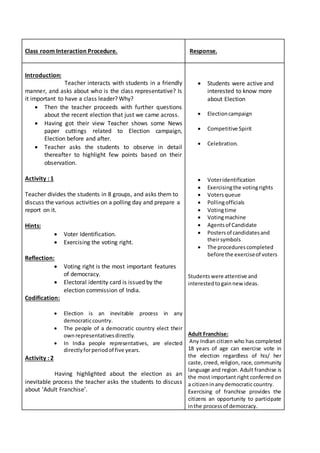 Electoral College Lesson Plan.docx - The Role of The... The Role of The Electoral College Lesson Plan Grade Level_ 11,12 _ Length of lesson _____50-60 Minutes _____ Lesson Title: The Electoral College: 270 to Win Content Standards: Connecticut Social Studies Content Standard - Civics: CIV 9-12.2 Analyze the role of citizens in the U.S. political system, with attention to various theories of democracy, changes in Americans' participation over ... en.wikipedia.org › United_States_Electoral_CollegeUnited States Electoral College - Wikipedia The original plan of the Electoral College was based upon several assumptions and anticipations of the Framers of the Constitution: Choice of the president should reflect the "sense of the people" at a particular time, not the dictates of a faction in a "pre-established body" such as Congress or the State legislatures, and independent of the ... 338776650-electoral-college-lesson-plan.pdf - Electoral... View 338776650-electoral-college-lesson-plan.pdf from CV 0010 at U.E.T Taxila. Electoral College Lesson Plan The Content: 1. Previous Learning: The context for this lesson will focus on the Electoral