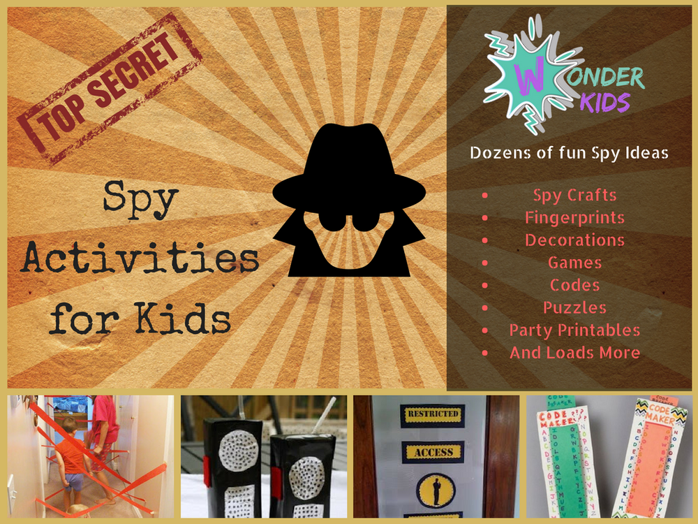 Spy and Secret Code Activities for Kids Jun 2, 2020 · Create your own SPY WEEK with these spy and secret code activities for kids! Below, you’ll find activities, crafts, and games with a fun spy theme. This is also a great resource if you’re planning a spy themed camp or birthday party. SECRET CODE ACTIVITIES It’s so fun to send and receive messages in a secret code!