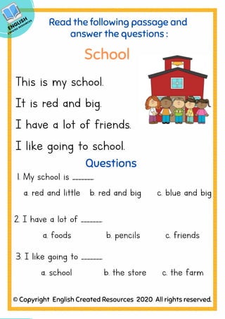 Kindergarten reading comprehension pdf