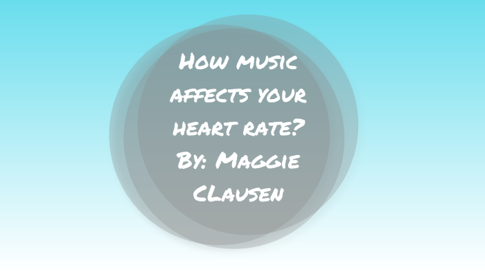 Music Boosts Heart Health - American College of Cardiology Oct 13, 2015 · First, studies suggest that compared to silence, music tends to increase heart rate and speed up breathing. Faster music also speeds up heart rate and breathing more than slower music. One study found that unpleasant music is associated with a decrease in heart rate compared to pleasant music. Does Music Directly Affect a Person’s Heart Rate? Feb 4, 2015 · We found that music has a significant impact on heart rate. Average heart rates were significantly higher after listening to rock music, despite that selection having the slowest tempo of the six genres tested. Heart rates also significantly decreased after listening to classical music and significantly increased after listening to the subjects’ favorite musical selections. Does Listening to Music Affect Ones Heart Rate? Sep 18, 2015 · They concluded by highlighting the fact that music can indeed improve an athletic performance, but it all varies on a persons’ musical preference. Music that may increase one persons’ heart rate may not increase another. A study found in “Heart”magazine did a pretty impressive job of proving the point that music can affect a heart rate. They began by saying that listening to fast, upbeat music accelerates heart rate, while listening to slow, meditative music had a relaxing effect and ...