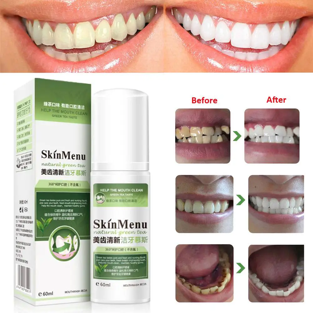 1Pc 60ml Green Tea Essence Teeth Cleaning Mousse Fresh Breath Remove Tooth Stain Teeth Whitening Oral Cleaning Care 60ml TSLM2
