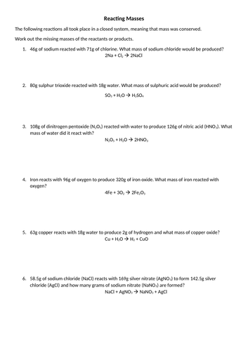 Lesson Worksheet:Conservation of Mass | Nagwa In this worksheet, we will practice using the law of conservation of mass to calculate the masses of reactants and products in a chemical reaction. Q1: Antoine Lavoisier was one of the first scientists to state the law of conservation of mass. Conservation of Mass Worksheet - arrsd.org substance by a mass equal to the amount of oxygen that reacted with the substance. These experiments led to what is currently known as The Law of Conservation of Mass. This law states that mass can neither be created nor destroyed. It can only be converted from one form to another. Conservation of mass - BBC Bitesize Conservation of mass Working scientifically. Maths skills are often used in science. We often need to make equations and do calculations. In... The mass of a gas. It isn't easy to measure the mass of a gas, and it may seem as though gases don't weigh anything, but... Test your knowledge.