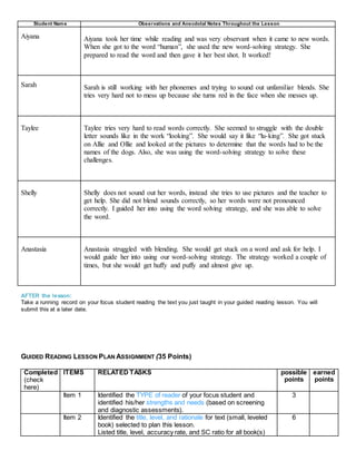 PDF Guided rEading Lesson Plan - Scholastic Guided rEading Lesson Plan: day two Date: Beyond thLEVEL: Teaching Points: Choose 1-2 each day Within the Text Solving Words ___Notice new/interesting words ___solve content specific words using graphics, word boxes ___apply problem solving strategies to complex words Monitoring/Correcting ___Monitor accuracy and and