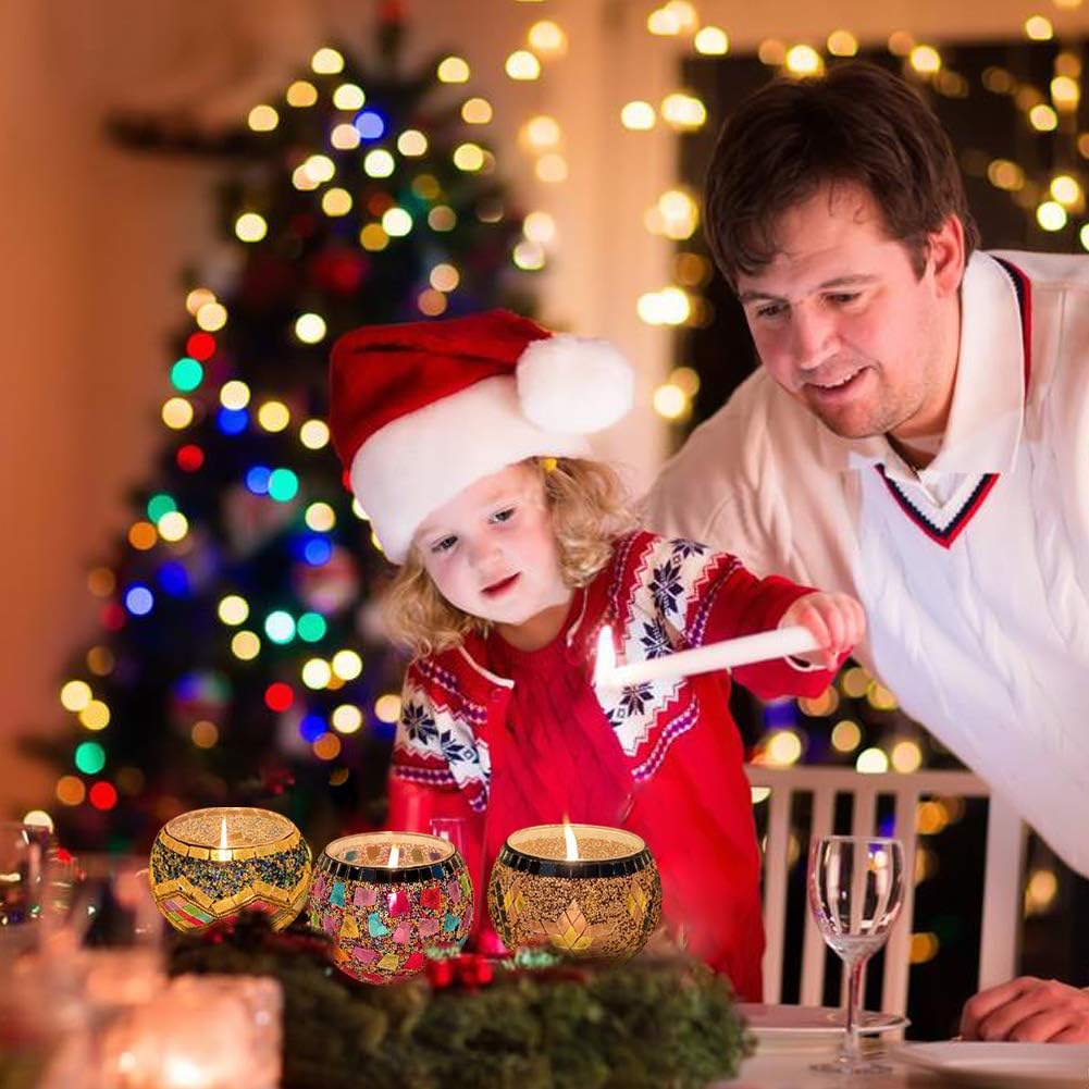 IIQ Glass Votive Candle Holders, Tealight Candle Holder, Mosaic Candle Holder, Handmade Stained Glass Beauties for Home Decor/(Style-C)