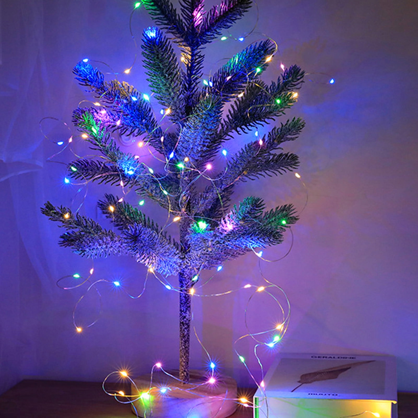 Qoolife Copper Wire String Christmas Lights, 16.5ft 50-LED with 4 Combined Copper Wires Decorative Lights Battery Powered Multi Color String Lights ...