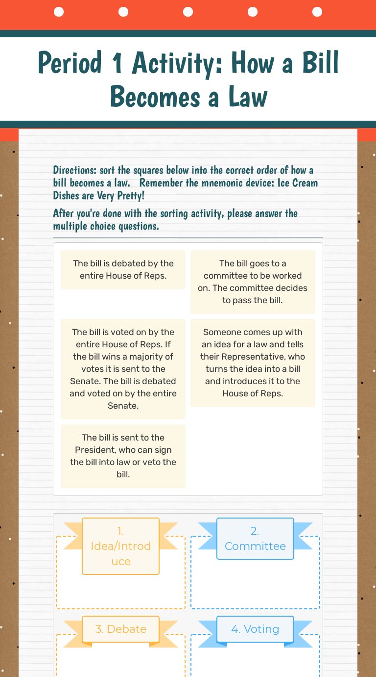 How A Bill Becomes A Law Worksheet Teaching … WebDetailed Worksheet on the topic of how a bill becomes a law in the federal government. Full of helpful clipart for ESOL students or differentiated learning methods. This worksheet …