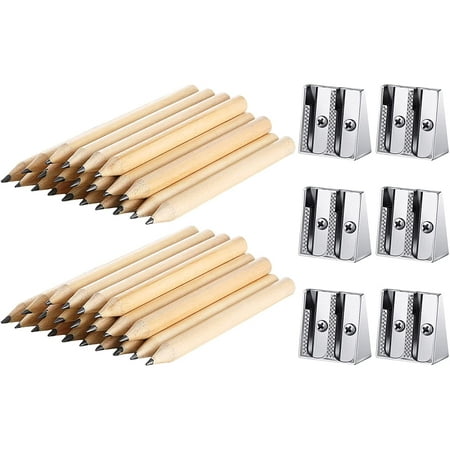 54 Pieces Golf Pencils Short Fat Pencils 3.5 Inch Fat Children Kindergarten Pencils for Kindergarten and Preschoolers and 6 Double Hole Beveled Metal ...