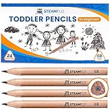 Short Jumbo Kids Pencils for Preschoolers, Kindergarten, Toddlers & Beginners - 12 Fat Pencils and 1 Sharpener & Eraser, HB Pencils, Triangle Grip, ...